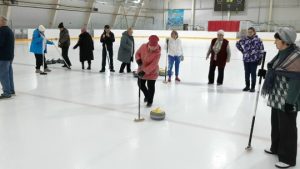 Зима окончательно еще не ушла, а они уже соскучились по льду. Генеральный директор АО “Элеконд ” Наумов Анатолий Федорович помог с автобусом и члены общества посетили мастер класс по керлингу на спортивном комплексе “Чекерил”